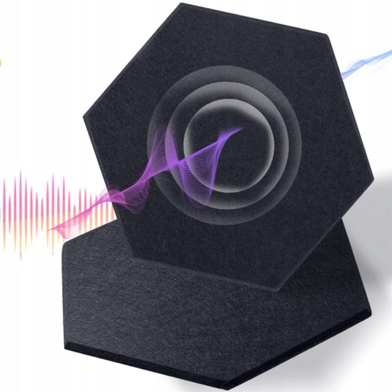 PANELE ŚCIENNE FILCOWE CZARNE akustyczne samoprzylepne wygłuszające Hexagon