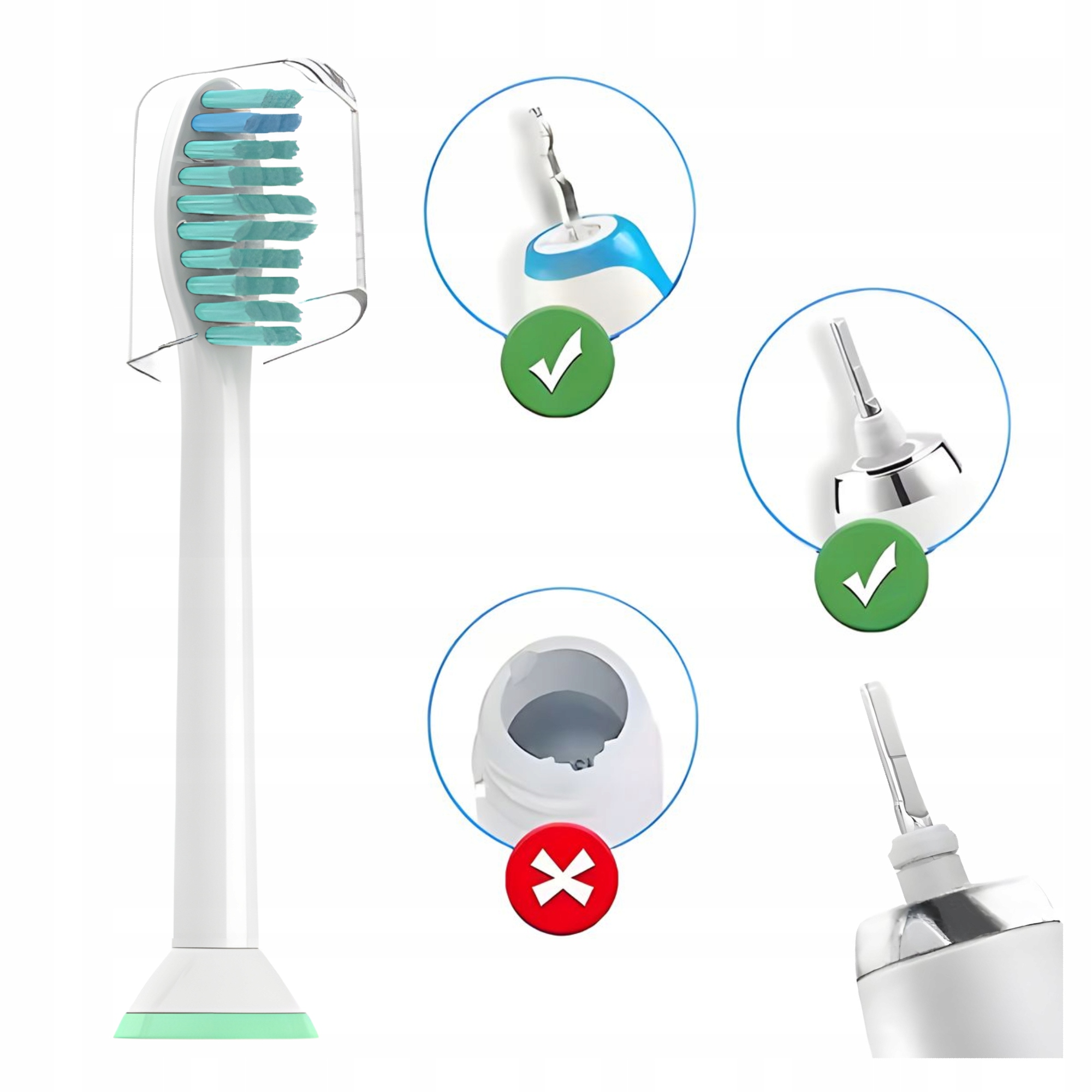 Końcówki pasują do szczoteczek Philips Sonicare, m.in: