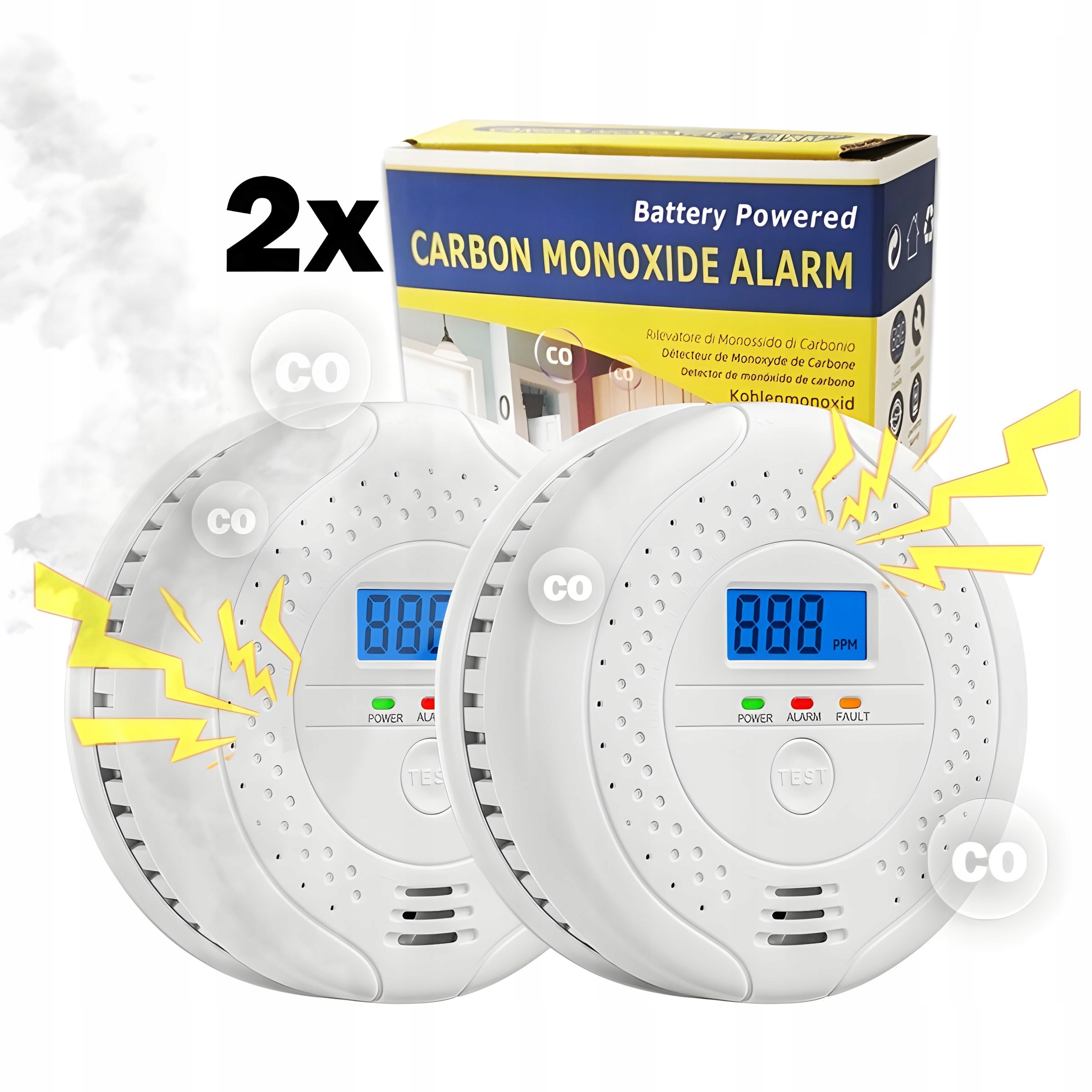 2X BEZPRZEWODOWY CZUJNIK TLENKU WĘGLA CO Z WYŚWIETLACZEM LCD – GŁOŚNY ALARM 85 dB, CERTYFIKOWANY DETEKTOR CZADU