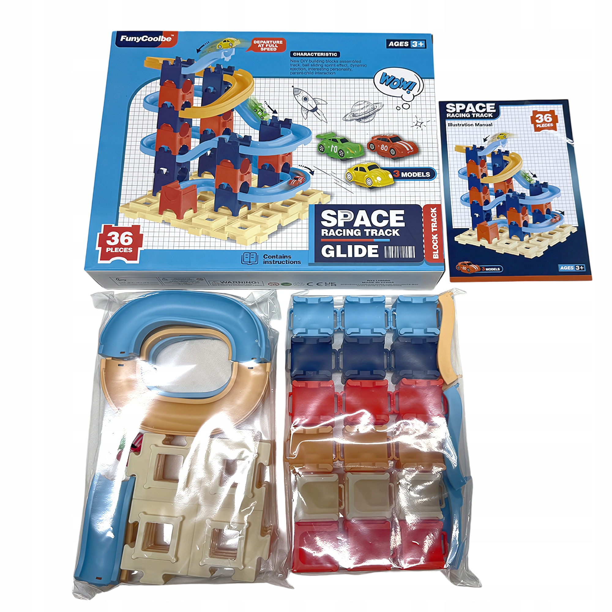 ✅ 36 elementów konstrukcyjnych – zbuduj własny tor w jednym z 3 modeli i obserwuj, jak samochodziki pędzą w dół.