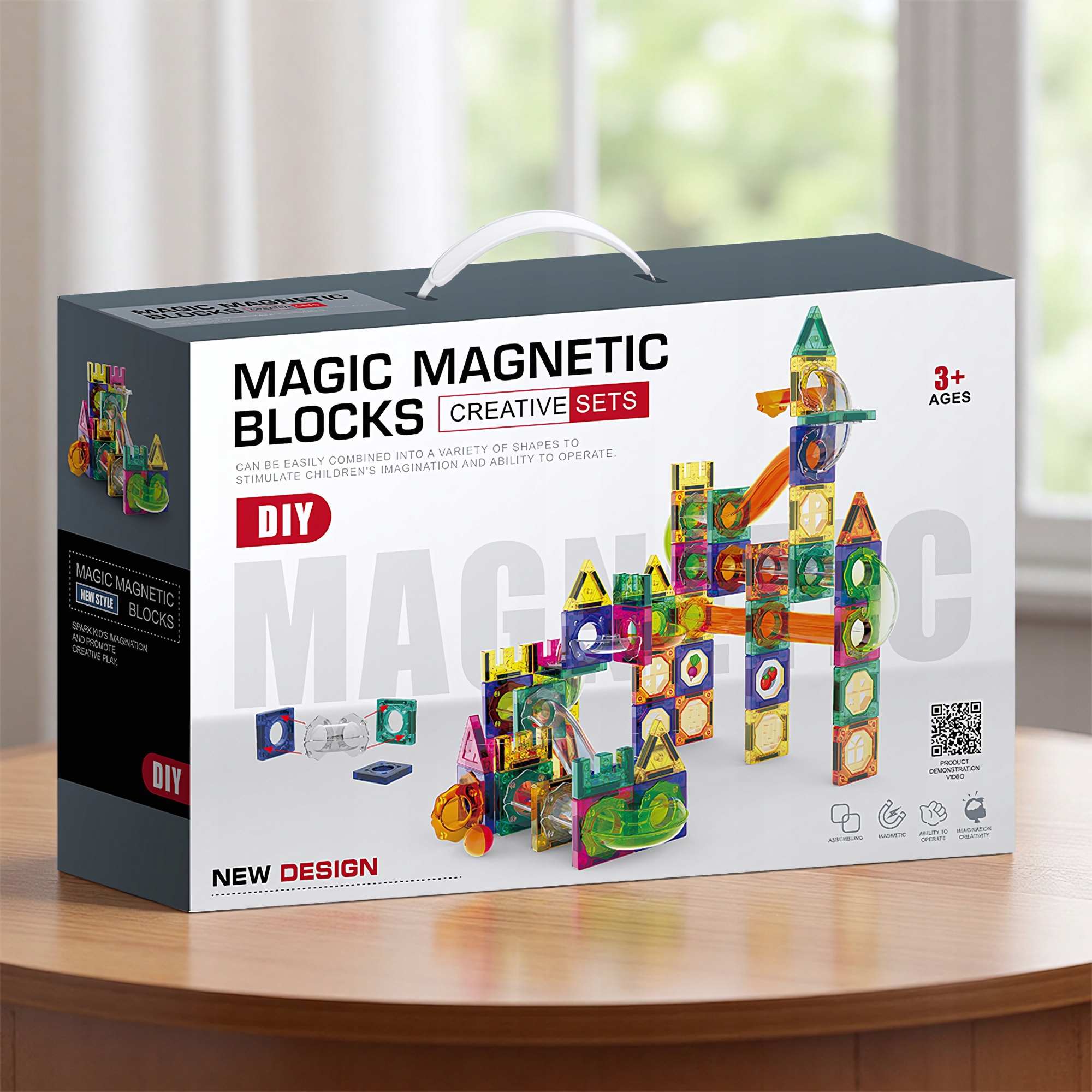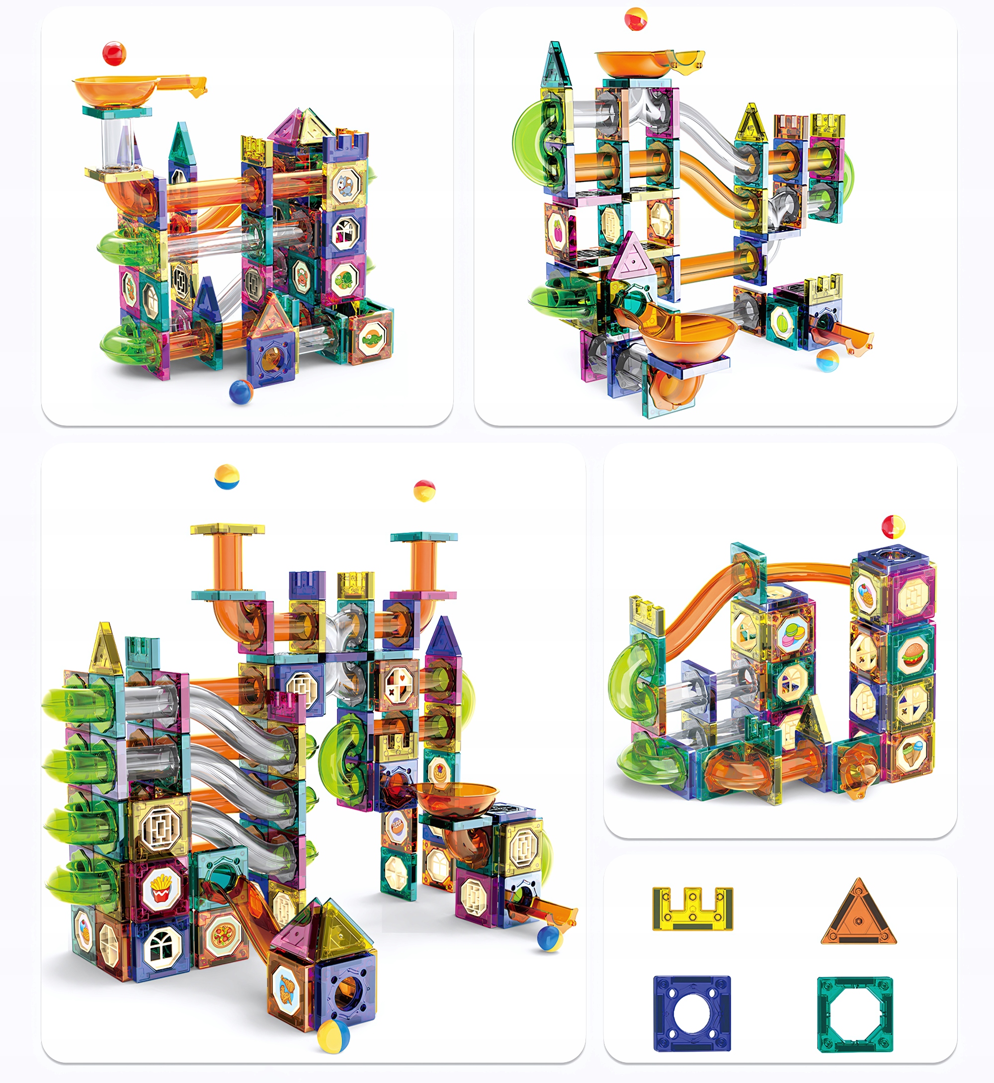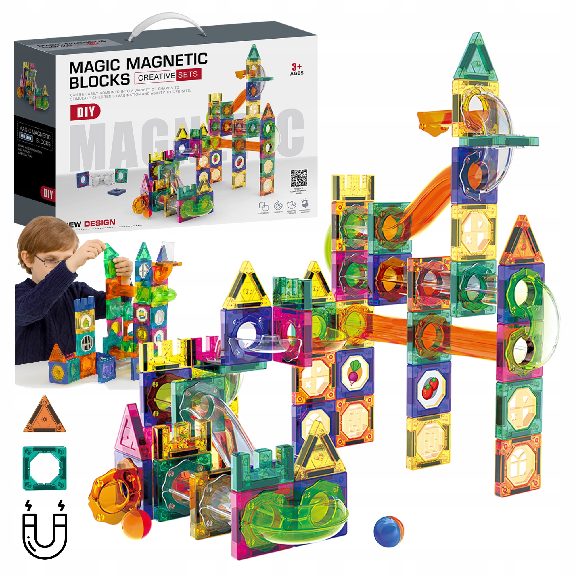 Klocki Magnetyczne konstrukcyjne zestaw 3D Tor kulkowy edukacyjne 160 el