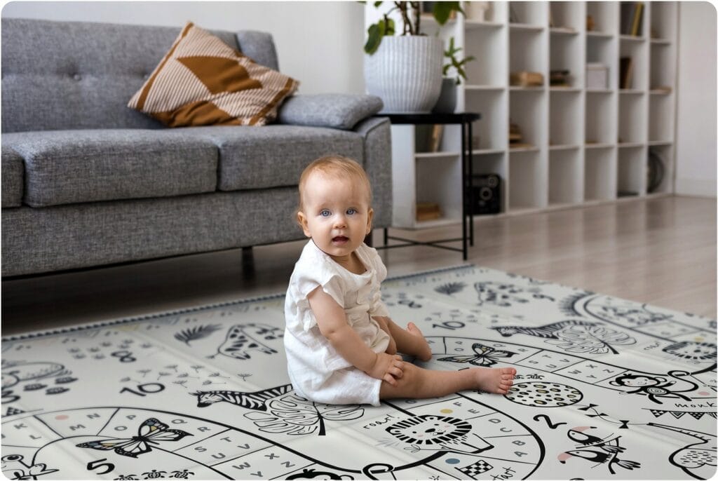Matę możesz swobodnie wykorzystać w pokoju dziecięcym zamiast dywanu. Jeśli potrzebujesz stworzyć przytulny kącik w pomieszczeniu, w którym są położone zimne kafelki lub twarde panele — to idealny produkt dla Ciebie.