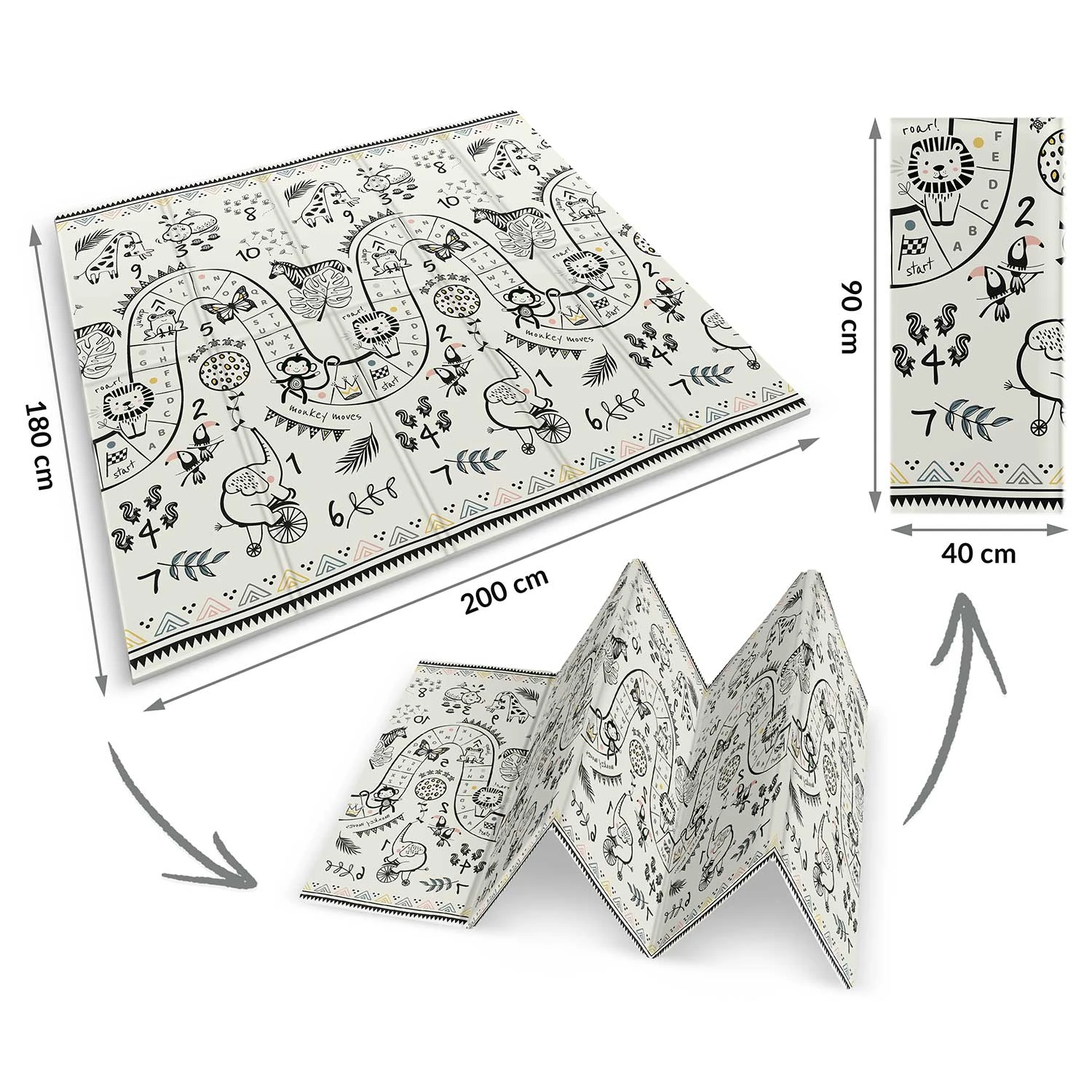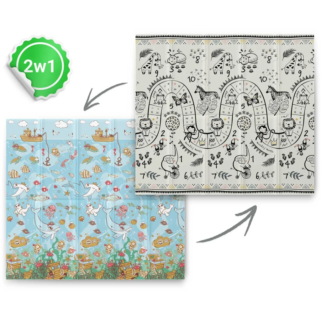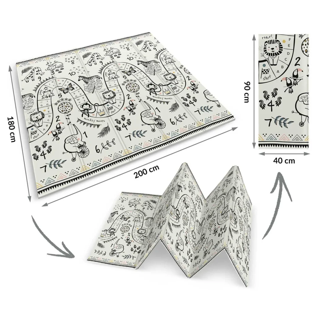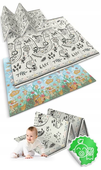 Ta wyjątkowa duża składana mata o wymiarze 200 x 180 cm, która ma wiele praktycznych zastosowań. Zapewni Twojemu dziecku komfort podczas zabawy oraz nauki raczkowania!