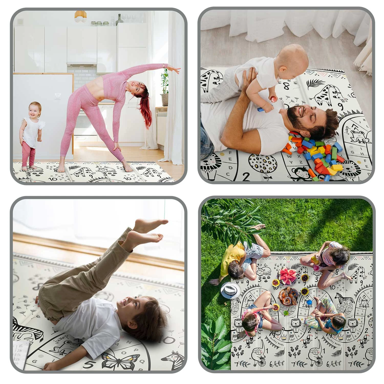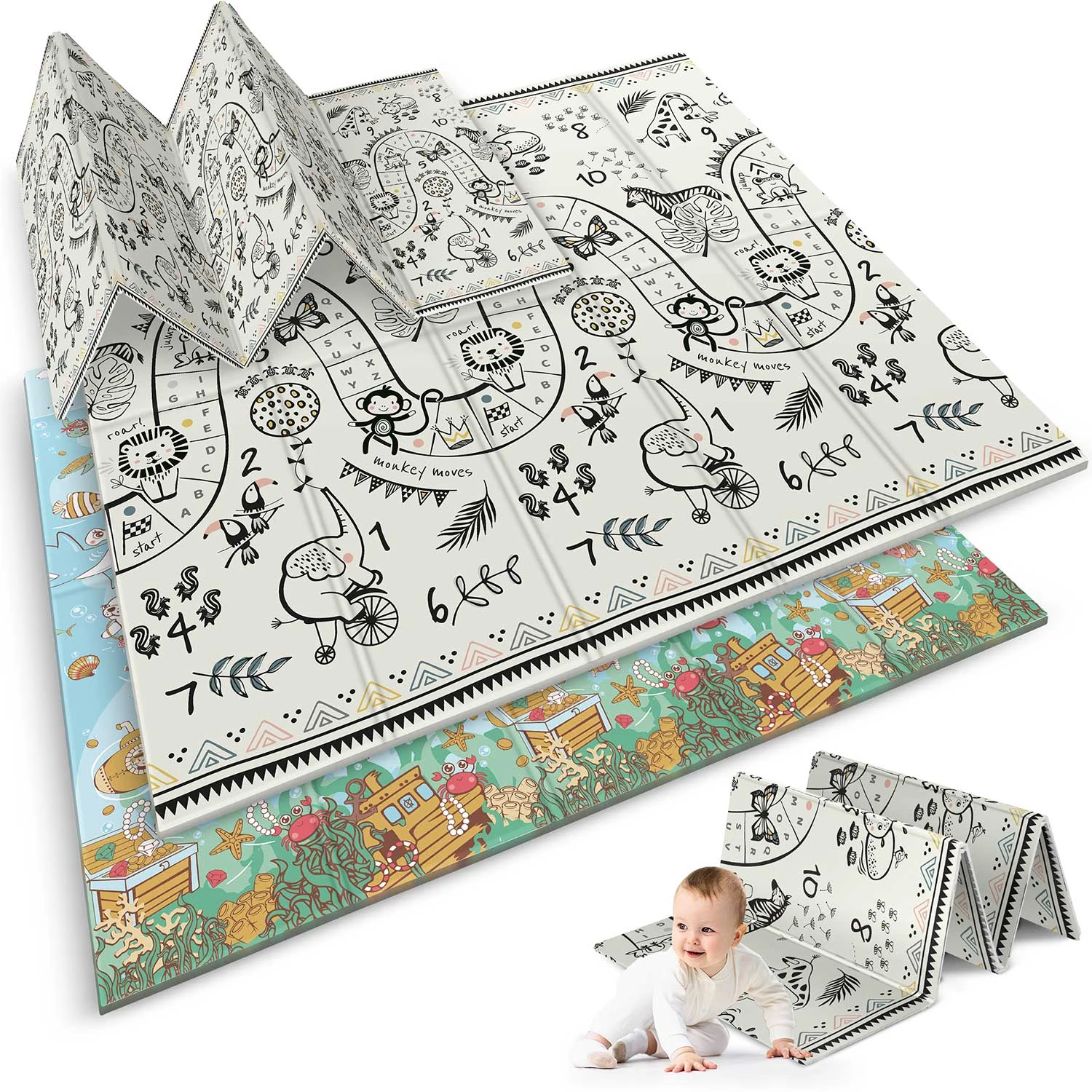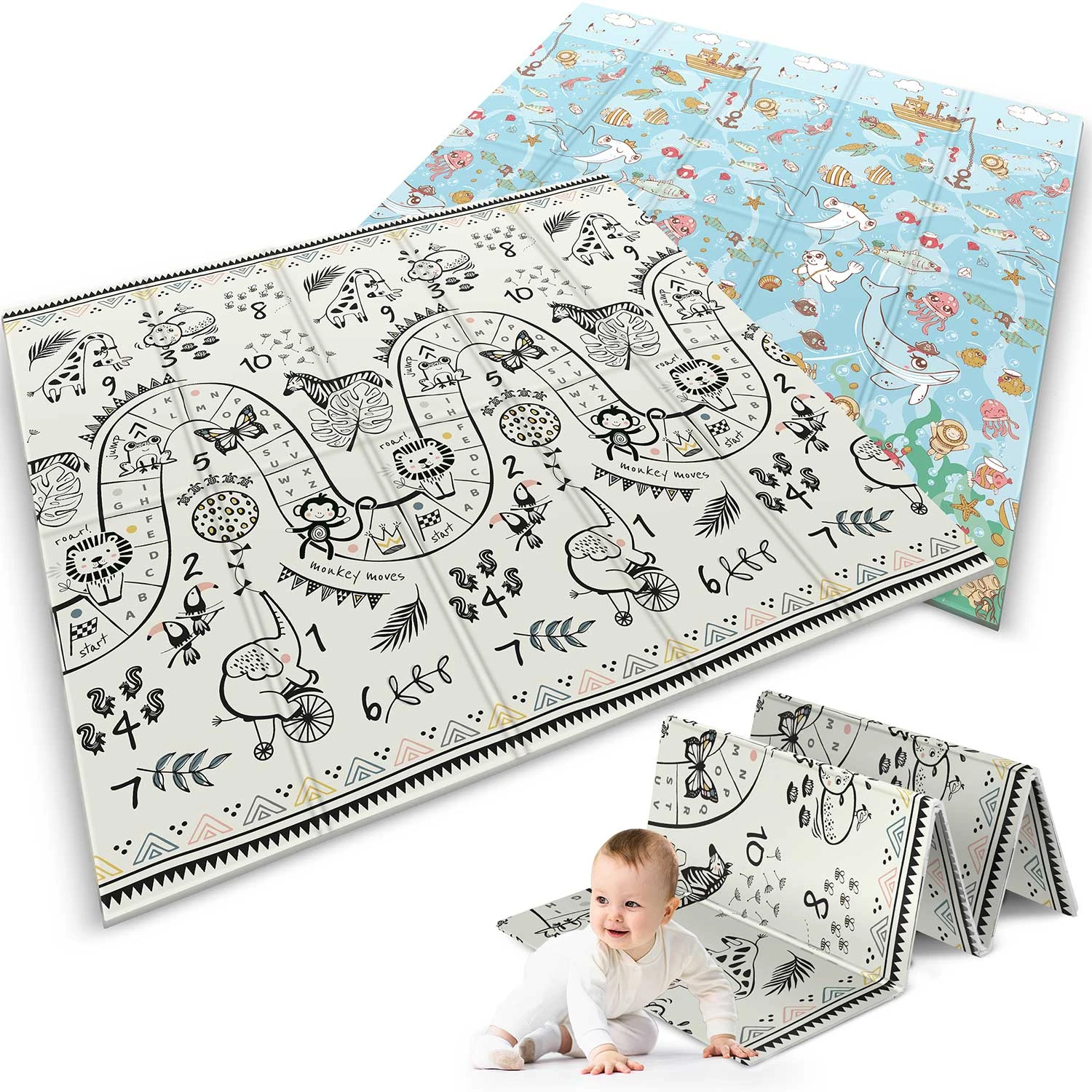 Ta wyjątkowa duża składana mata o wymiarze 200 x 180 cm, która ma wiele praktycznych zastosowań. Zapewni Twojemu dziecku komfort podczas zabawy oraz nauki raczkowania!
