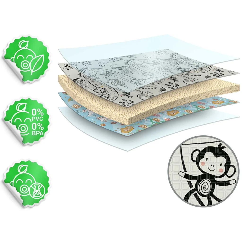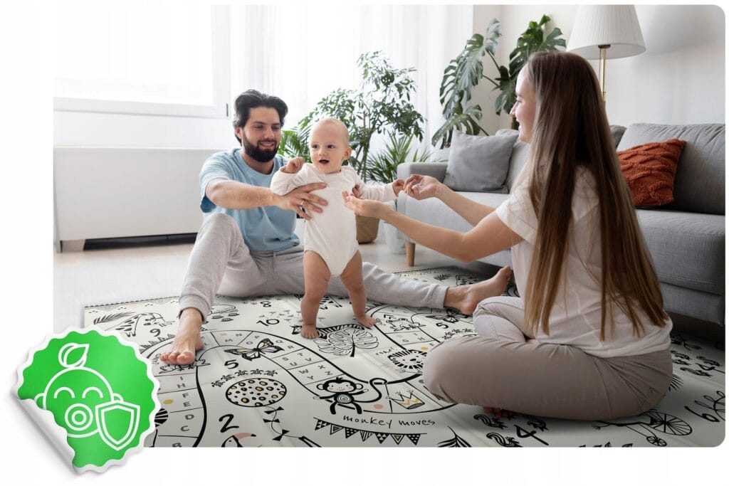 Wykonana z bezzapachowej, najwyższej jakości pianki XPE, bezpiecznej dla Twojego malucha. Bardzo gruba pianka (1 cm!) amortyzuje przed upadkiem na twardą podłogę.