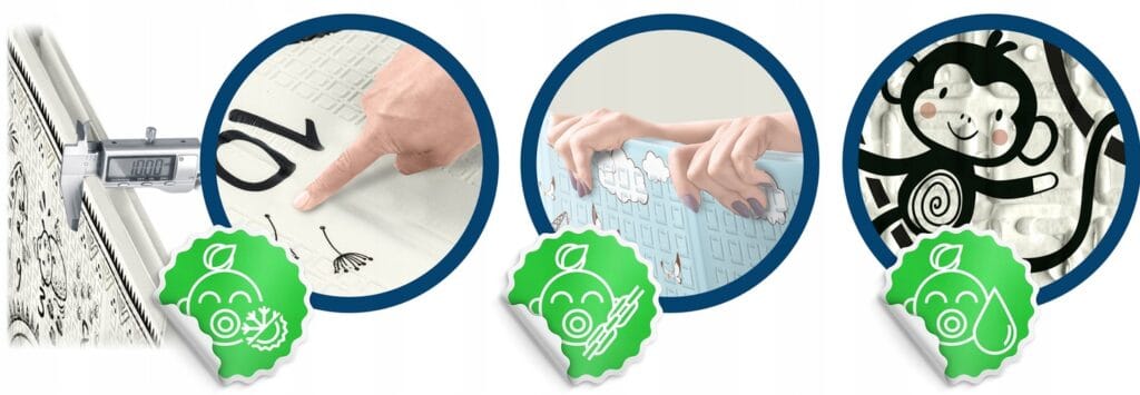 Maty zostały opracowane przez Projektantkę z Akademii Sztuk Pięknych w Gdańsku. Specjalizującej się w komunikacji wizualnej, z szerokim doświadczeniem w projektowaniu produktów przeznaczonych dla dzieci, dzięki temu masz pewność, że mata będzie odpowiadała potrzebom Twojego dziecka.