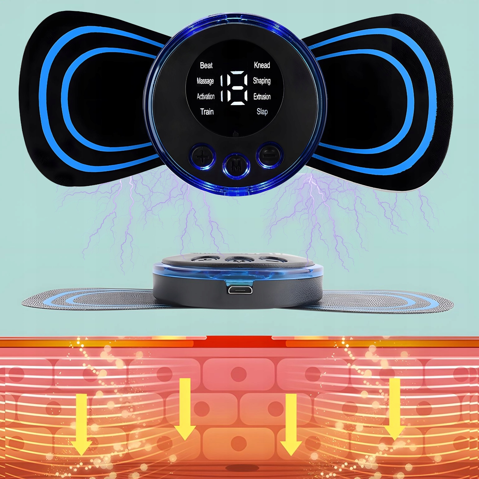 ⏺ Mikroprądowy mini masażer EMS: wyeliminuj zwiotczenie ramienia i tłuszczu pod pachami, idealny do drenażu limfatycznego w celu promowania krążenia krwi itp.