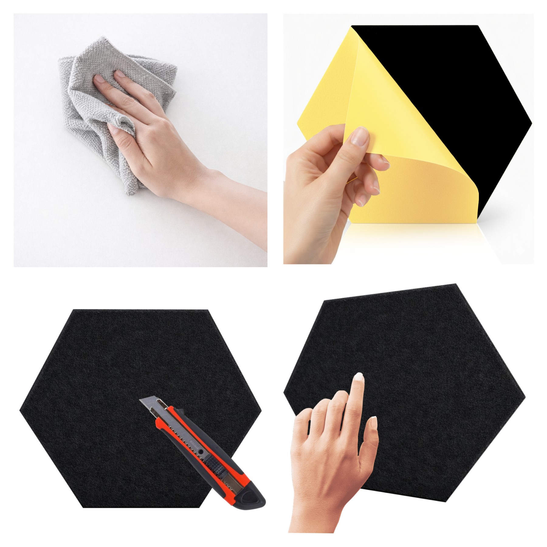 Samoprzylepne panele akustyczne HEXAGON poprawiają komfort akustyczny w pomieszczeniach domowych i biurowych. Skutecznie redukują echo oraz hałas, a jednocześnie stanowią nowoczesny element dekoracyjny. Dzięki swojej strukturze mogą również pełnić funkcję tablicy do przypinania notatek, zdjęć czy dekoracji – łącząc właściwości wygłuszające z praktycznym zastosowaniem.