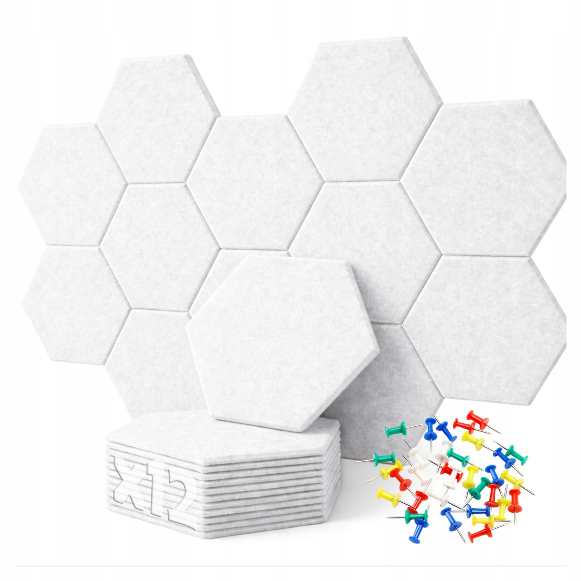 Panele akustyczne samoprzylepne HEXAGON 30x26x0,9cm, białe, zestaw 12 sztuk