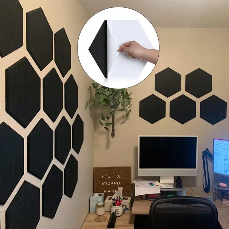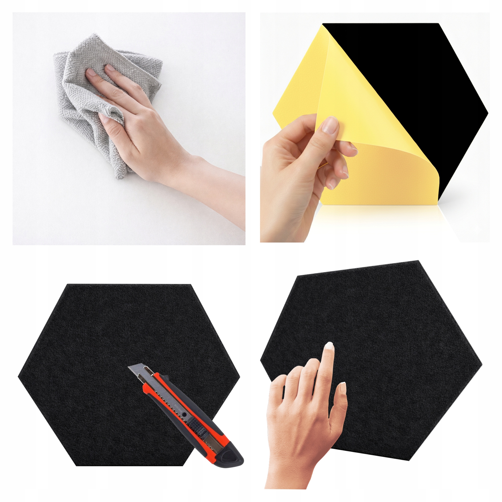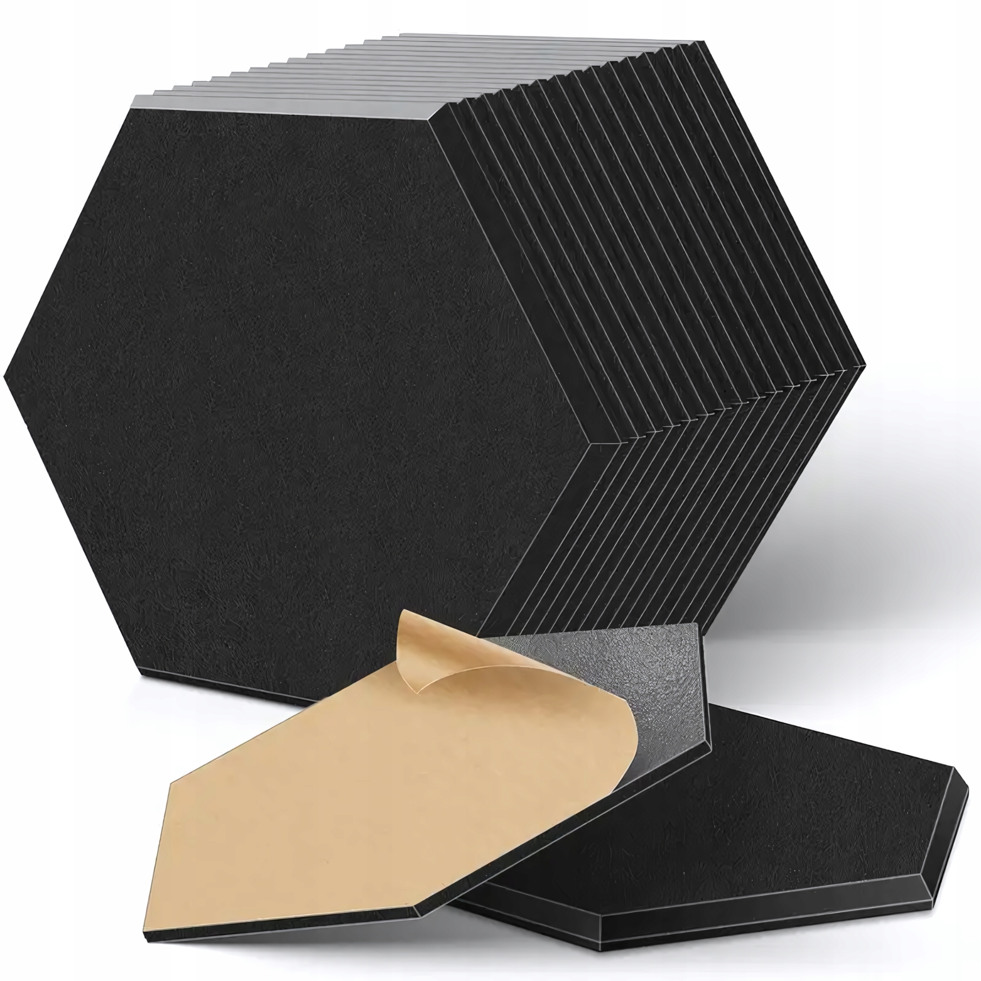 PANELE ŚCIENNE FILCOWE CZARNE akustyczne samoprzylepne wygłuszające Hexagon