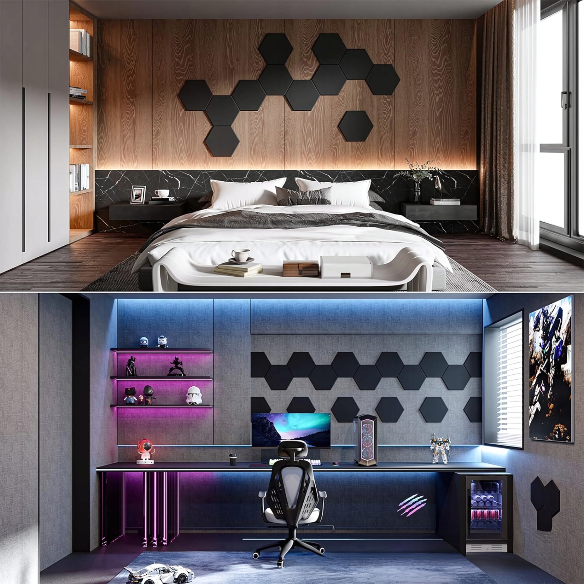 🔹 Pokoje gracza i strefy multimedialne – ograniczenie odbić dźwięku i poprawa warunków akustycznych podczas korzystania ze sprzętu audio.
